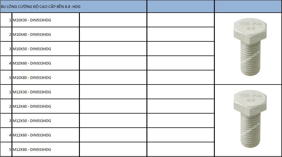 Bu Lông DIN933 - HDG - Cấp Bền: 8.8